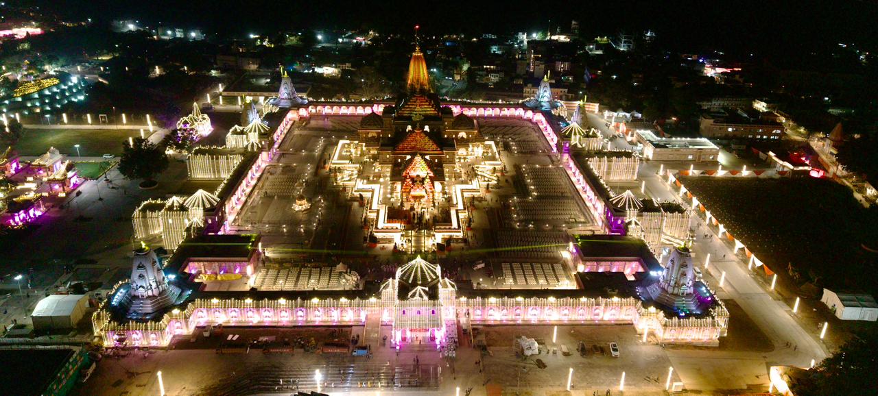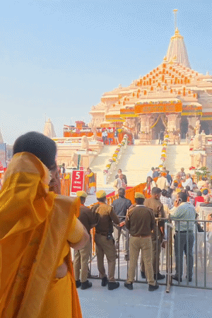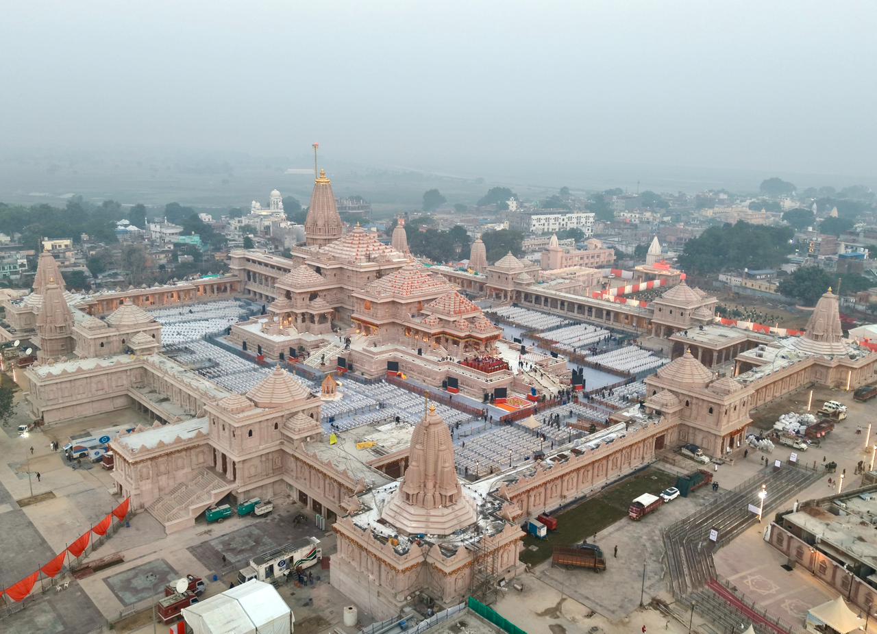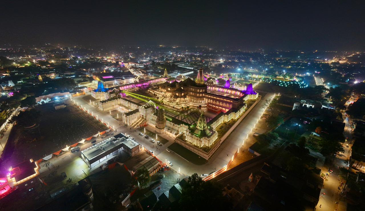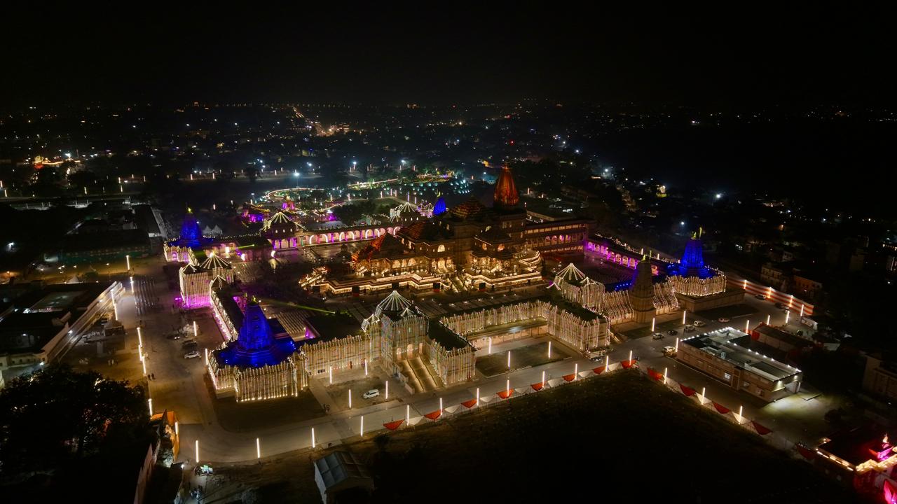 मंदिर परिसर से लेकर रामपथ और पूरा शहर जगमगाती लाइटों से चकाचौंध नजर आ रहा है।