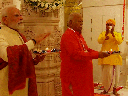 पीएम मोदी और मोहन भागवत ने रामलला की पूजा अर्चना की