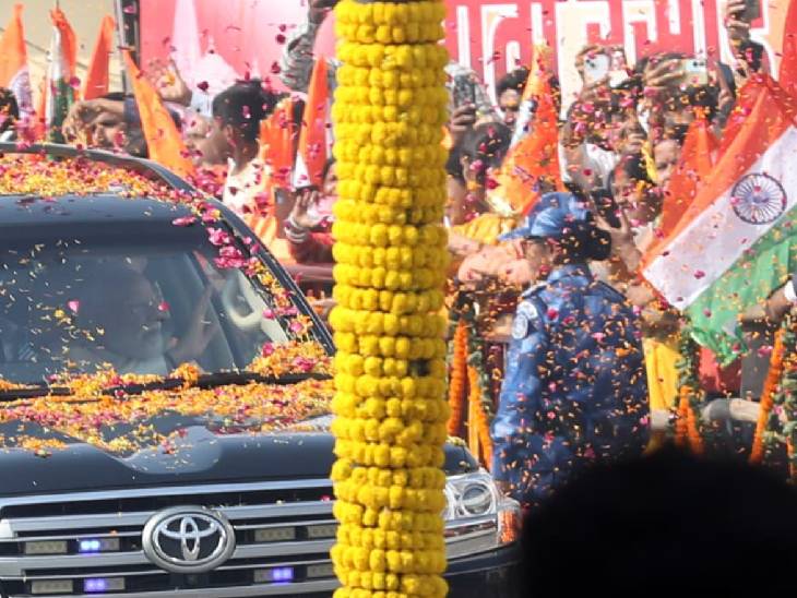 साकेत महाविद्यालय से राम मंदिर तक PM मोदी ने रोड शो किया। लोगों ने उन पर फूल बरसाए