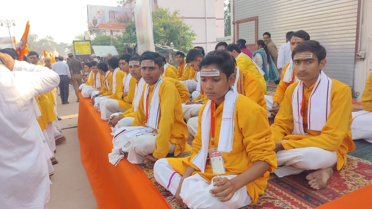 अयोध्या: राम नगरी में मंगलवार को प्रधानमंत्री नरेंद्र मोदी भगवान श्रीराम जन्मभूमि मंदिर के शिखर पर ध्वजारोहण करने वाले हैं। अयोध्या पहुंचकर उन्होंने साकेत कॉलेज से रामजन्मभूमि तक डेढ़ किमी का रोड शो किया। इस दौरान स्कूली छात्रों ने काफिले पर फूल बरसाए और जगह-जगह महिलाओं ने उनका स्वागत किया।